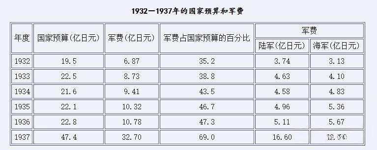 上文谈到,日本工业集中在几个大军工基地,其他工业并不强,相当于是“先军经济”,就是优先发展军工业的经济结构。1931-1936年,日本军费支出从原来的30%上涨到了47%,军事经济支出高达70亿,兵力从1931年的23万增长到1936年的近55万(数量超过英美)。